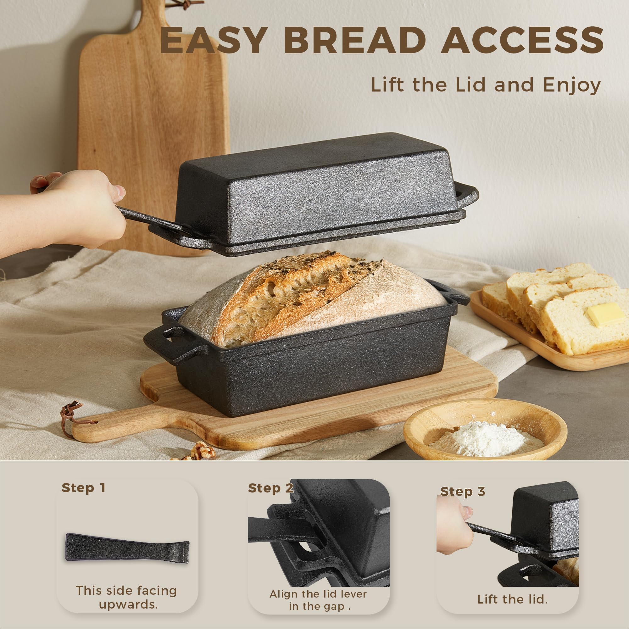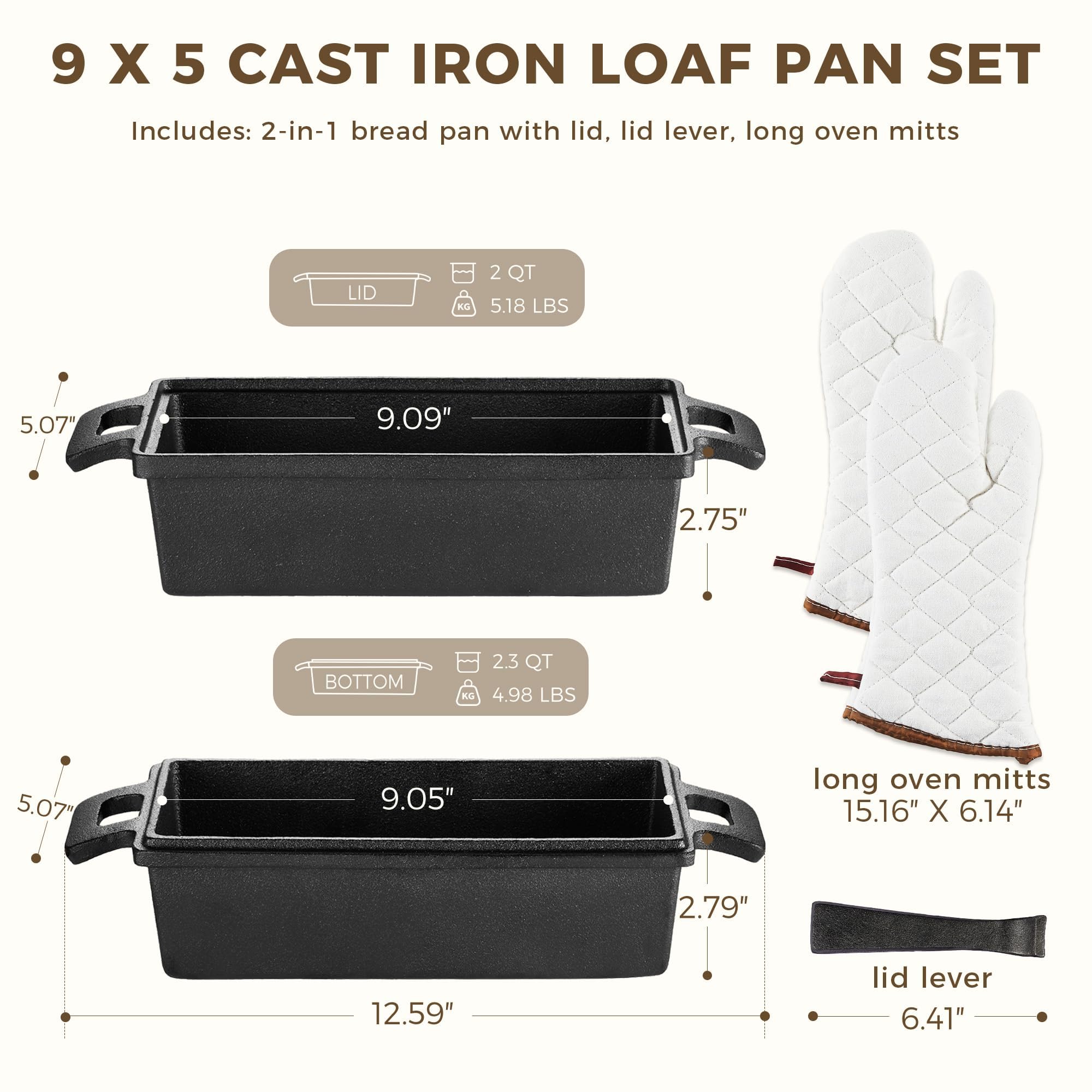 2-in-1 Cast Iron Loaf Pan with Lid, 9x5 Inch