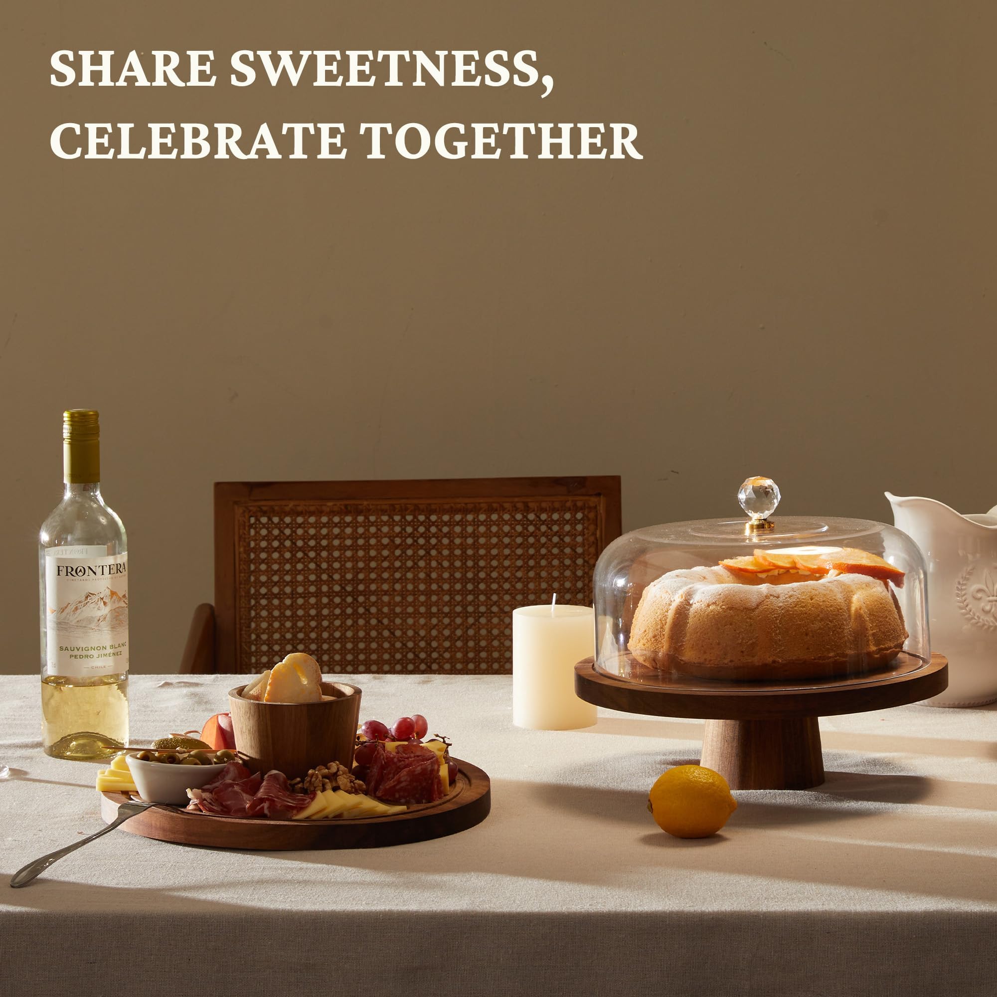 This versatile cake stand with dome includes a removable base, giving you the option to use it as a traditional cake stand or transform it into a stylish charcuterie board, snack tray, or serving plate. Ideal for showcasing cakes, pastries, fruits, cheeses, and more—perfect for any gathering or celebration.
