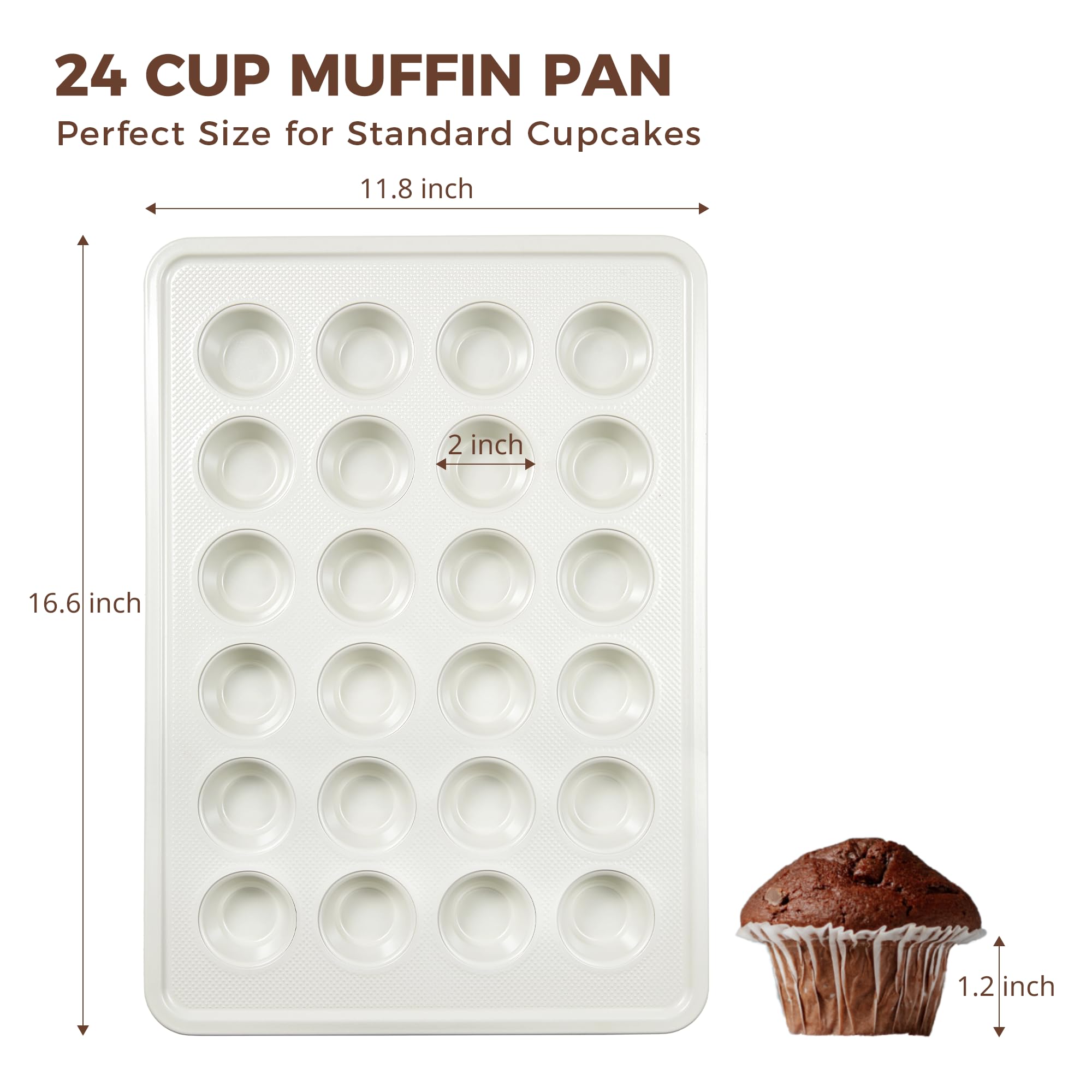 This cupcake pan 24 regular size is made from natural ceramic. It delivers reliable non-stick performance with lasting durability and safety. Free from PTFE, PFOA, PFAS, lead, and cadmium—safe for you and the environment. Built to last and easy to clean, it won't peel or release harmful substances, even under high heat.