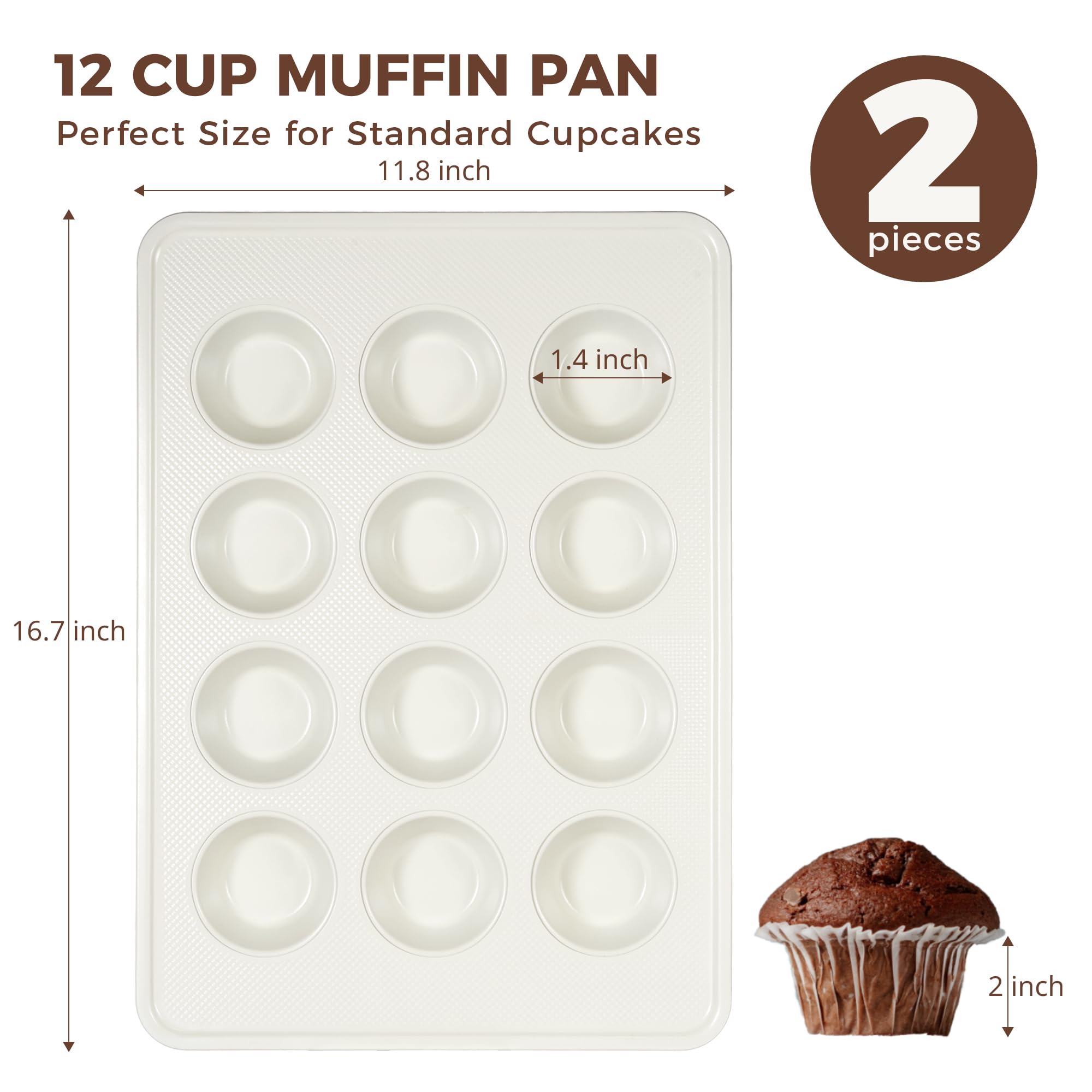 Diamond Texture Ceramic Muffin Pan, 12-Cup (2-Pack)