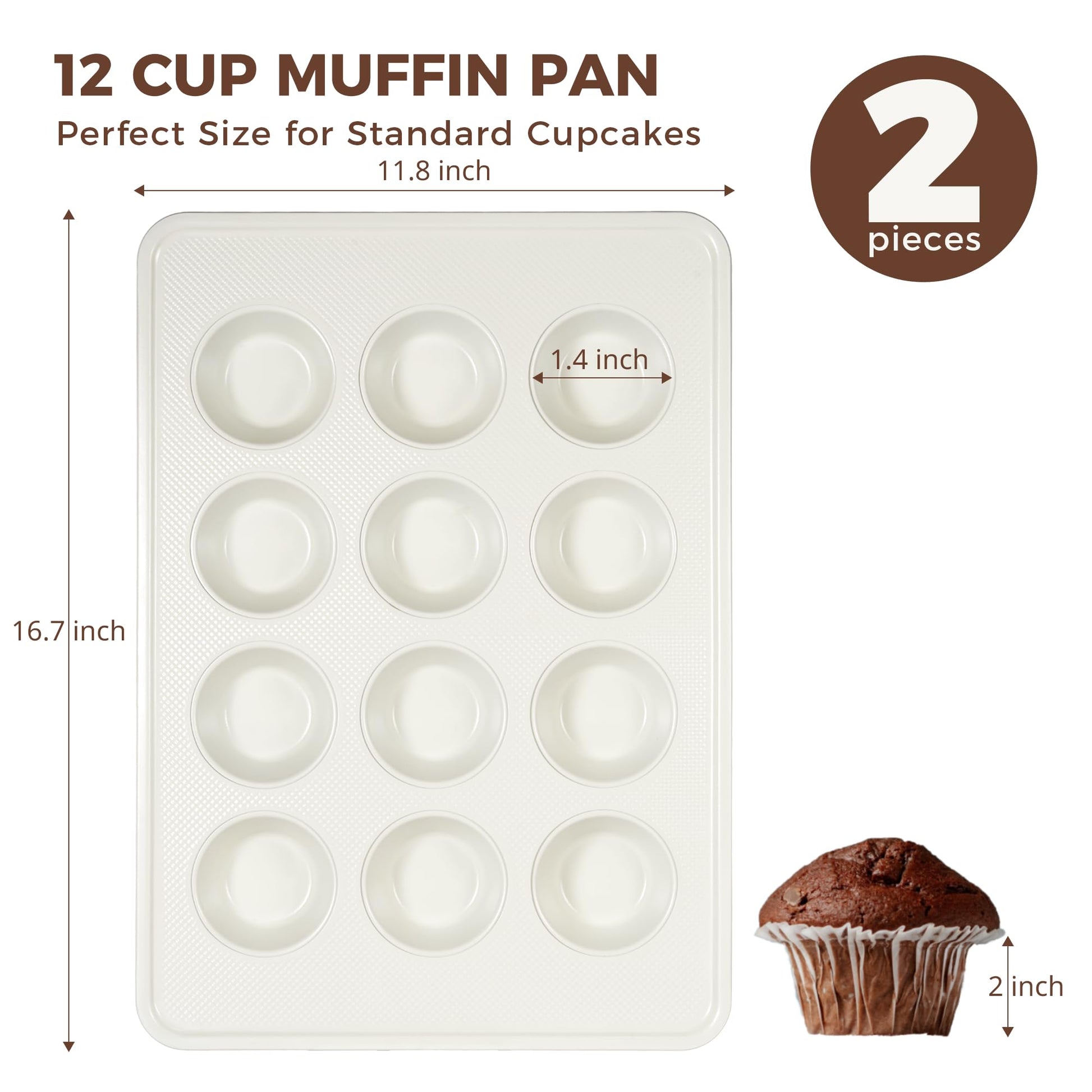 Diamond Texture Ceramic Nonstick Standard Muffin Pan, 12-Cup (2-Pack)