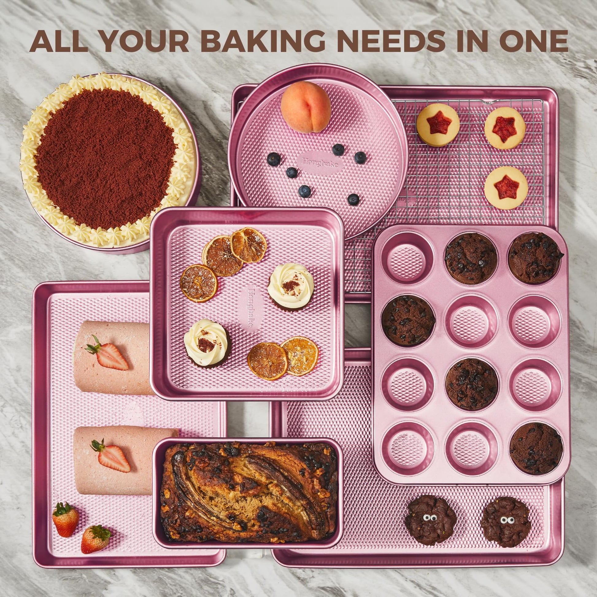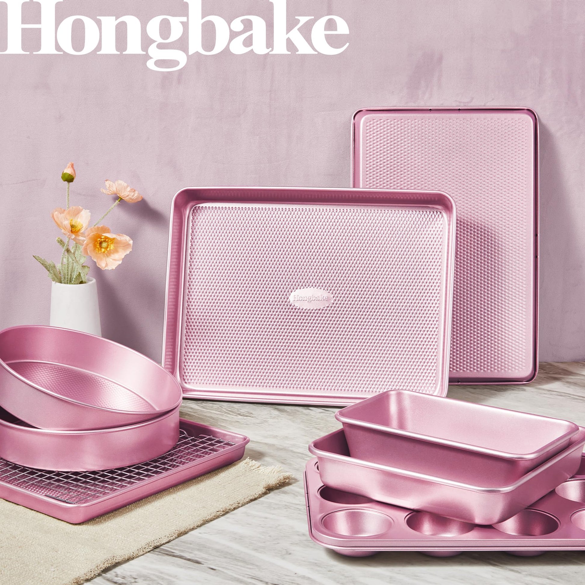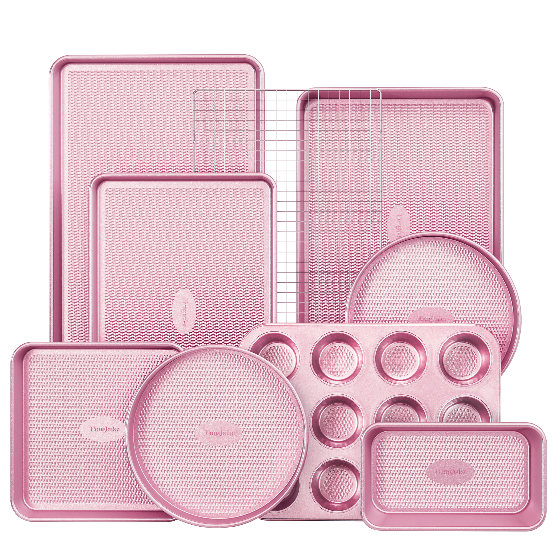 Designed to support everyday baking and oven cooking, the Hongbake Diamond Texture Bakeware Set brings together versatile pan shapes, reliable nonstick performance, and even heat distribution in one complete collection.
