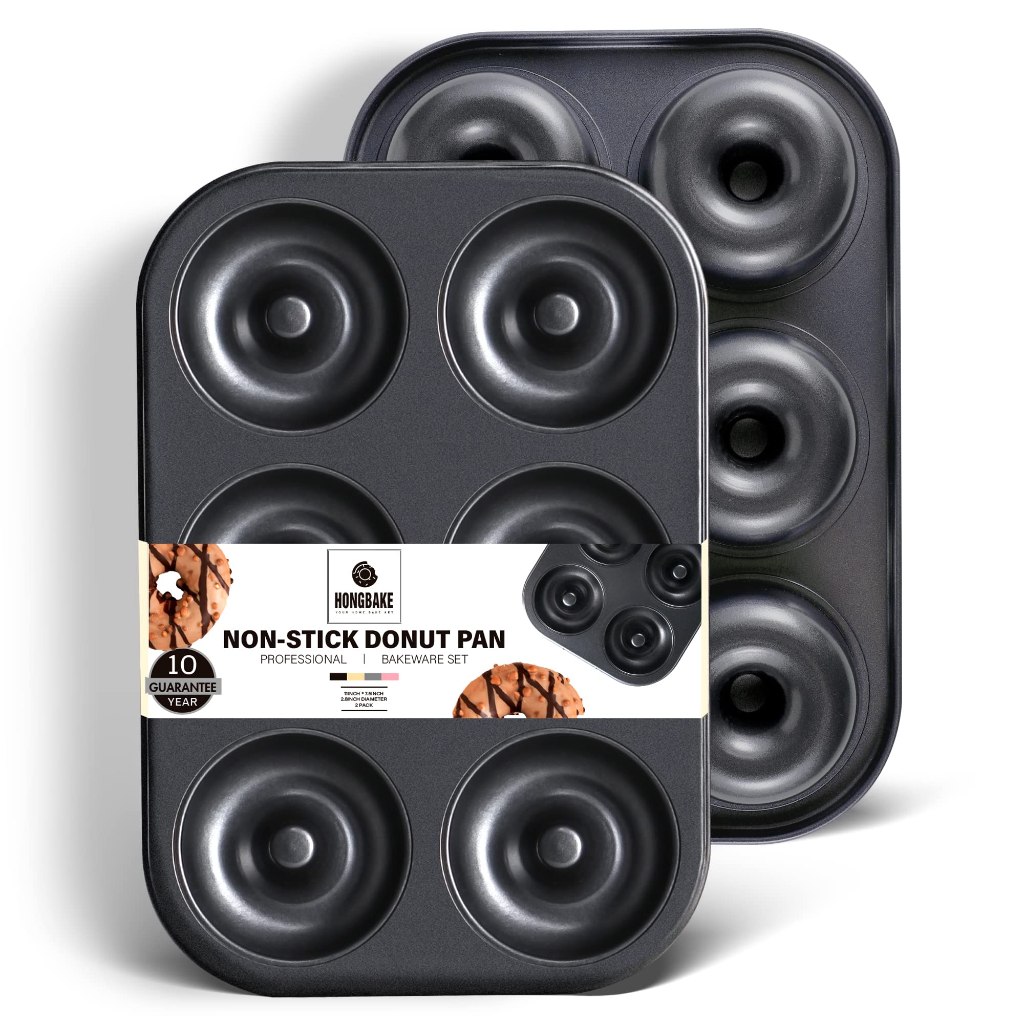 HONGBAKE emphasizes user experience, so the donut pans for baking we designed have high practicability. Made from 57% thicker carbon steel, the donut molds are very sturdy and effectively avoid warping during heating. High-quality material makes donuts evenly baked and perfectly brown all around.