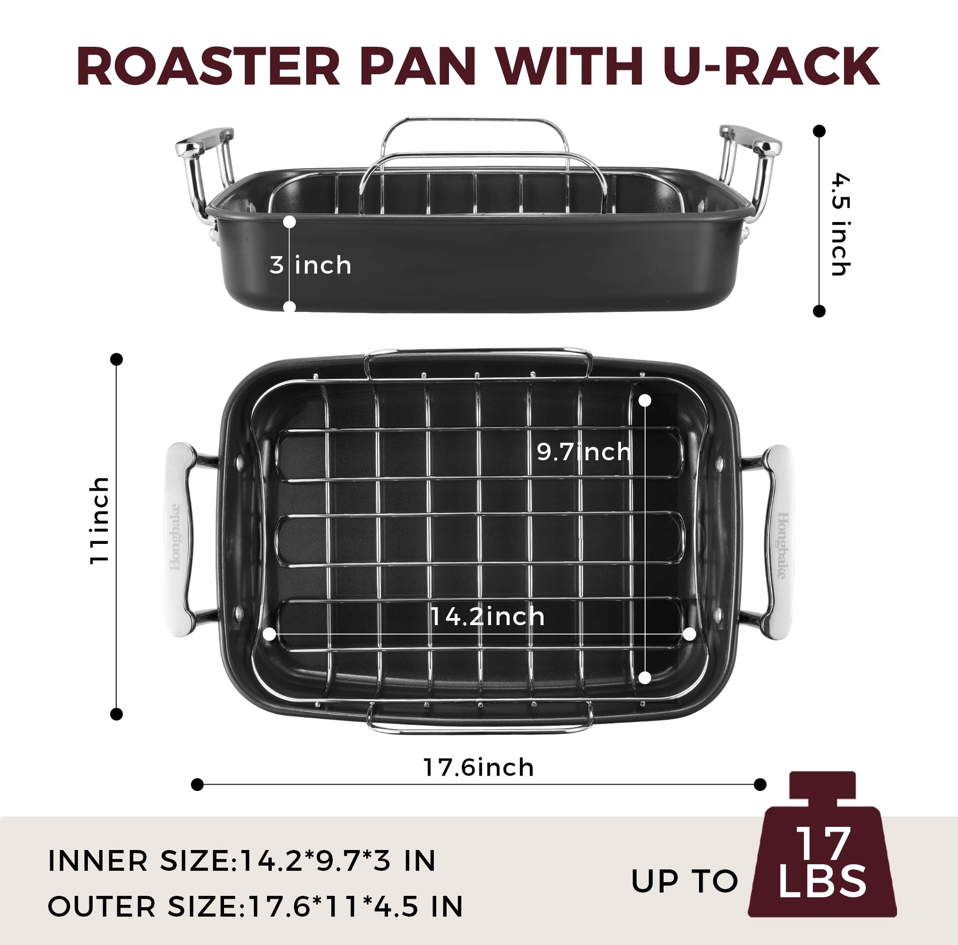 Nonstick Roasting Pan with Rack, 18.7 × 13.6