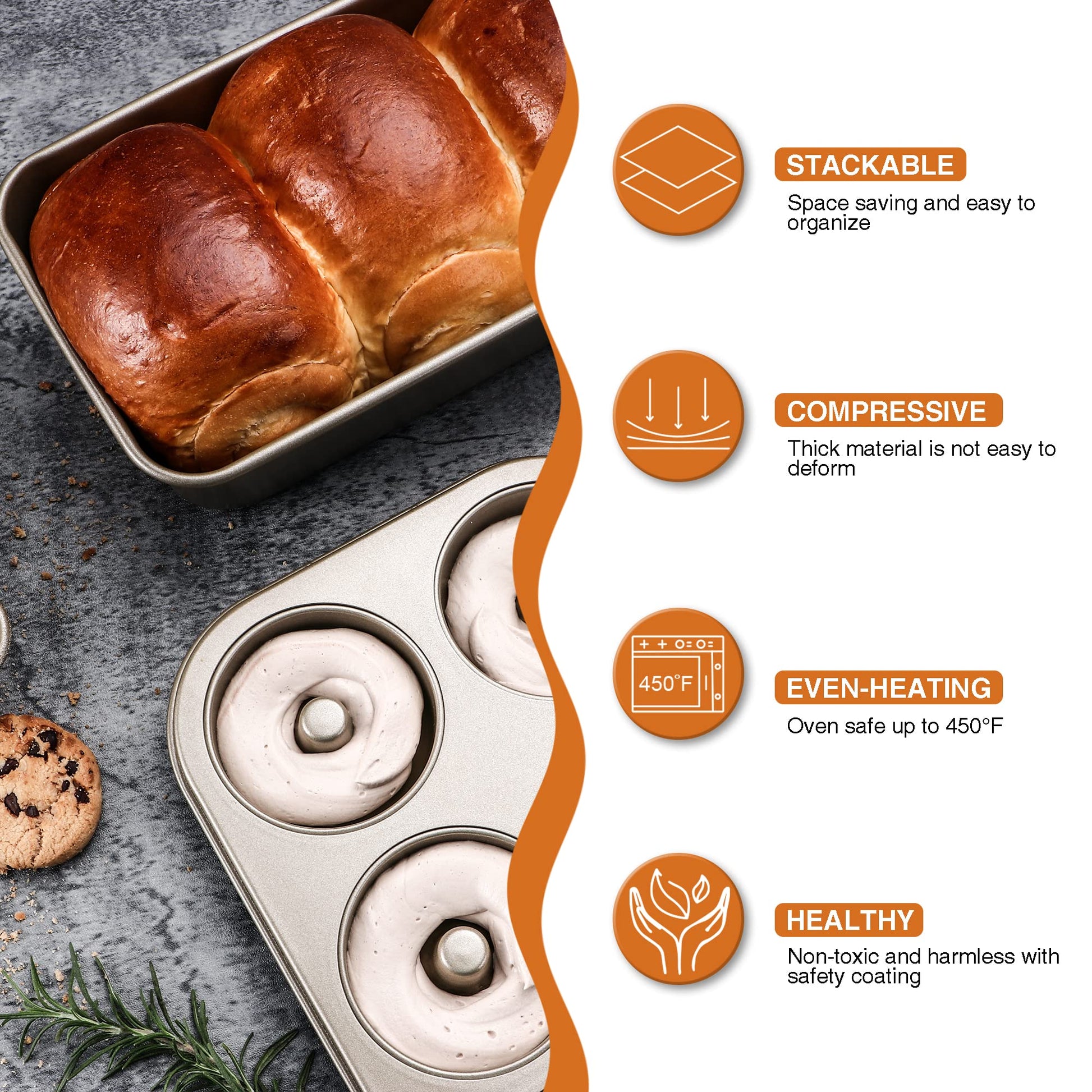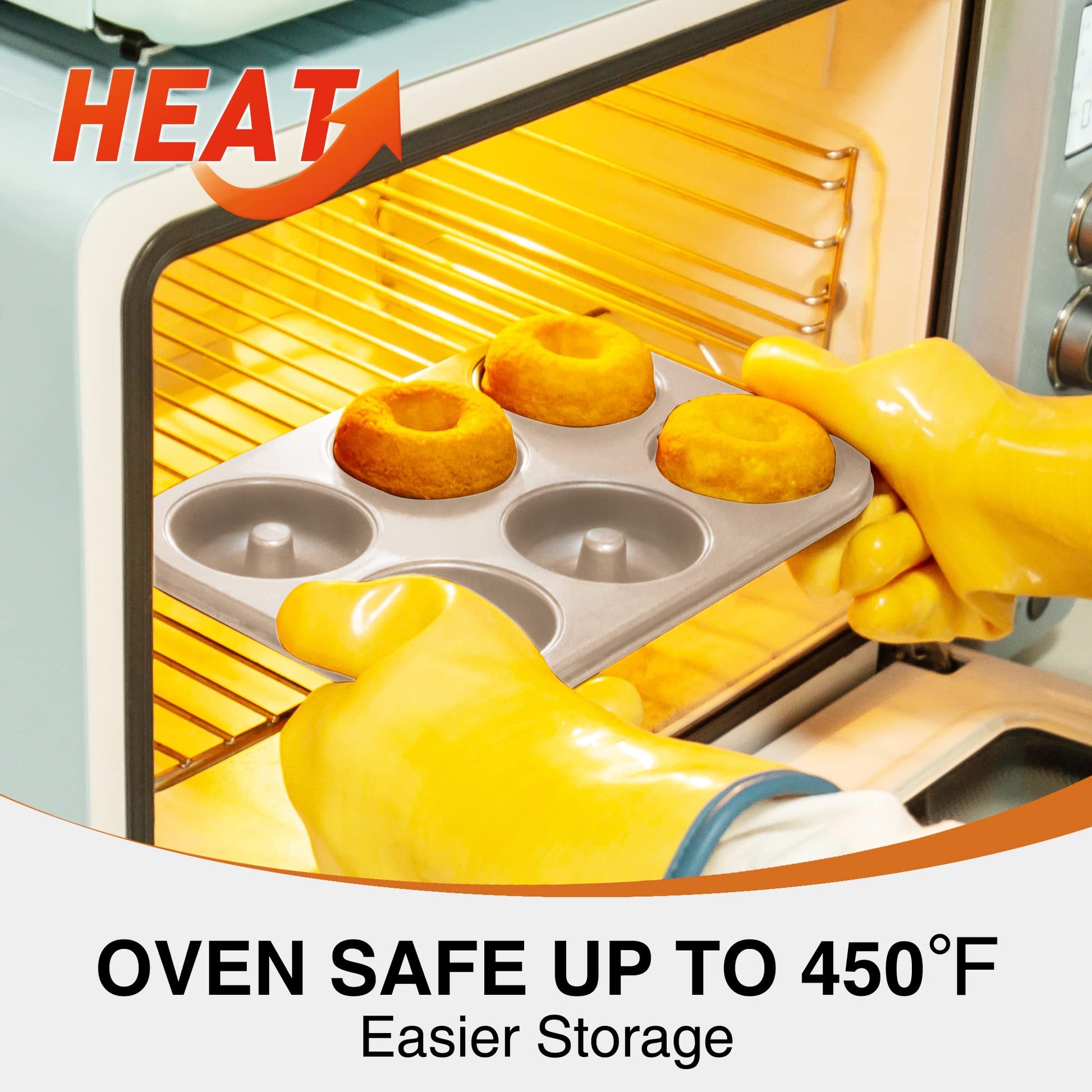 Made from extra-thick carbon steel, these pans are built for even heat distribution and warp resistance up to 450°F. A smooth nonstick coating helps donuts release cleanly without losing their shape, and cleanup is quick and simple. Just add a light coat of oil before baking, pour in batter, and enjoy healthier baked donuts ready for glazing, cinnamon sugar, or your favorite toppings.