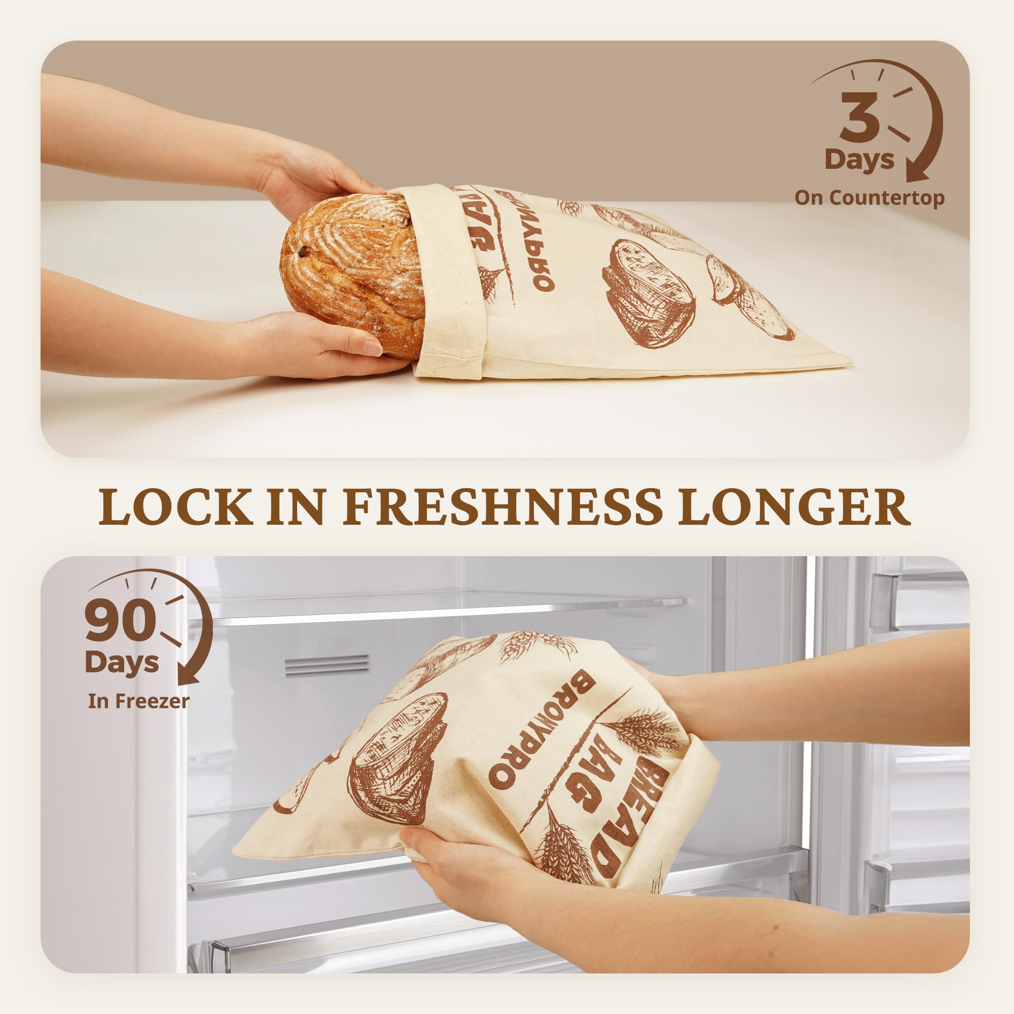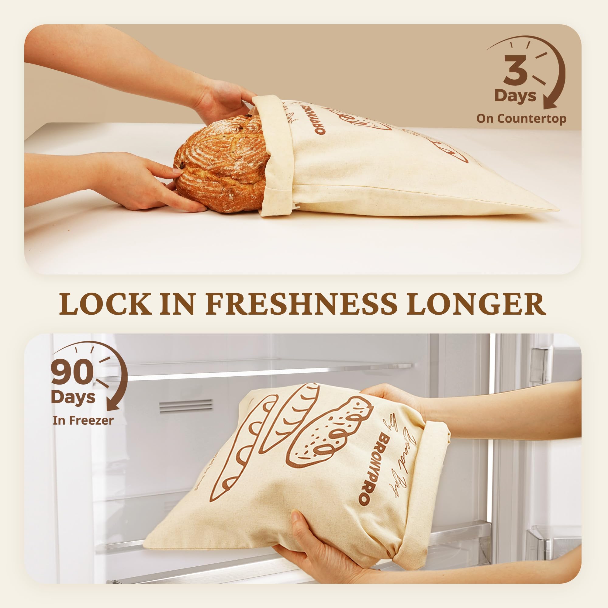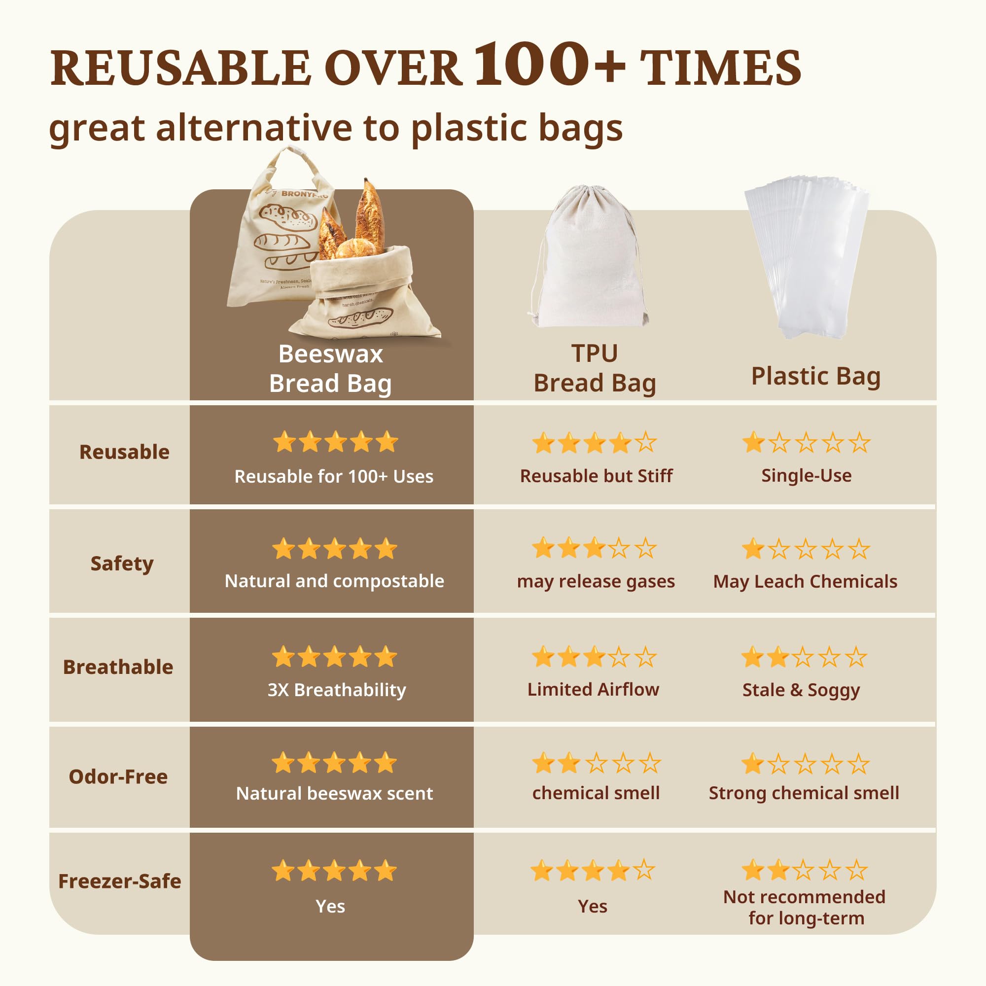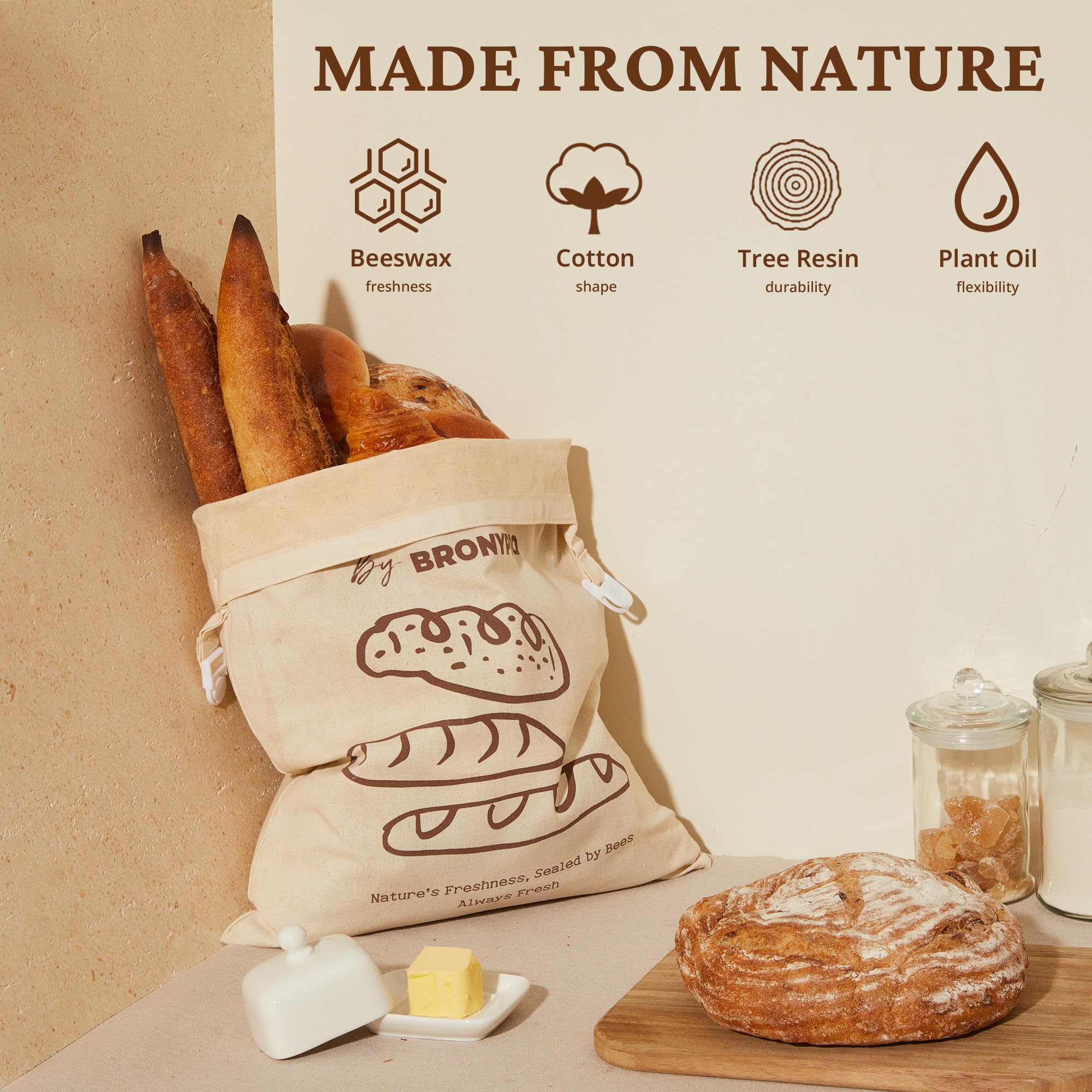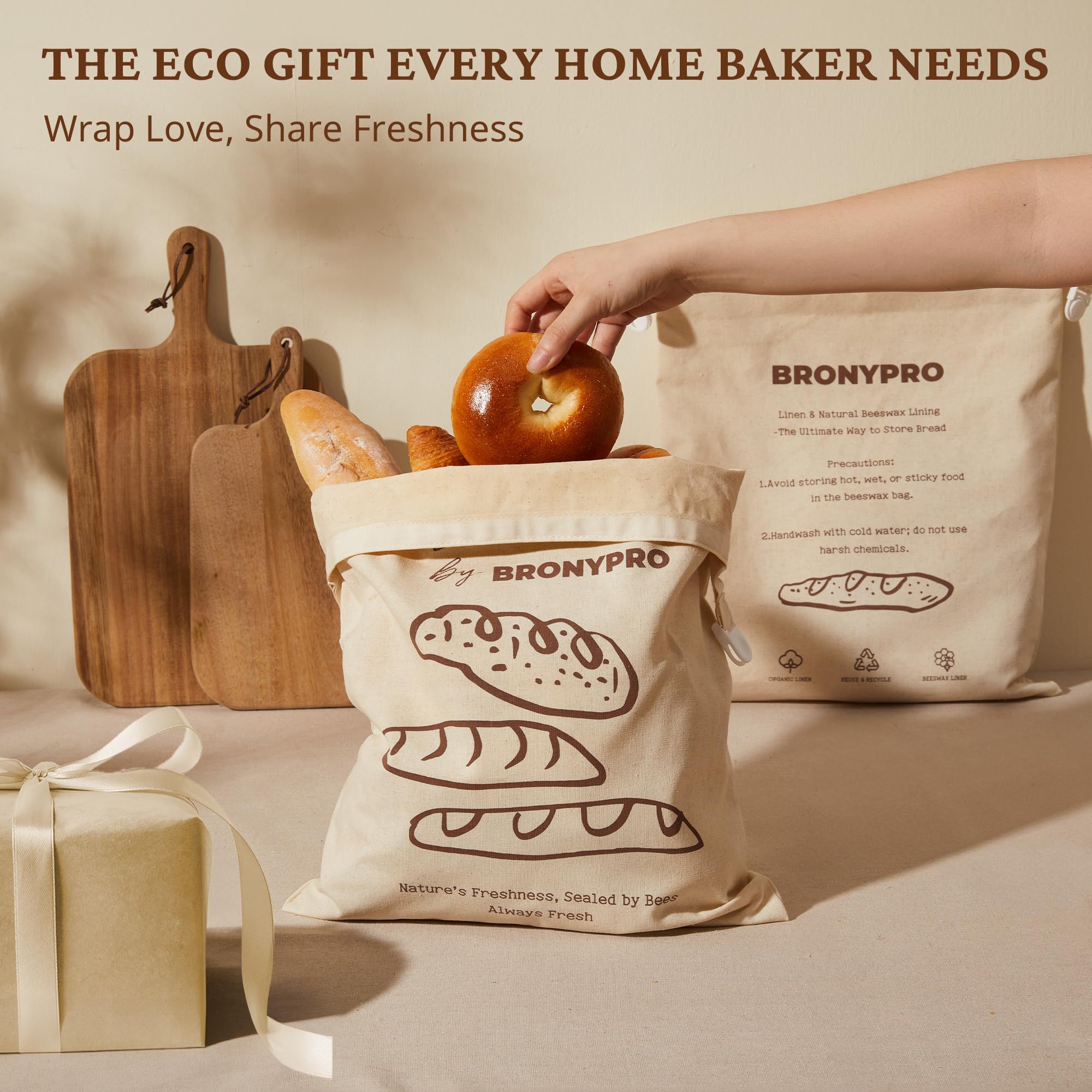 The BRONYPRO linen bread bag blends four natural ingredients—Organic Linen for breathability, Beeswax for freshness, Organic Plant Oil for flexibility, and Tree Resin for durability. Unlike plastic, these reusable bread bags are 100% compostable and chemical-free, making them a healthier choice for both you and the planet. Naturally, they're odor-free.
