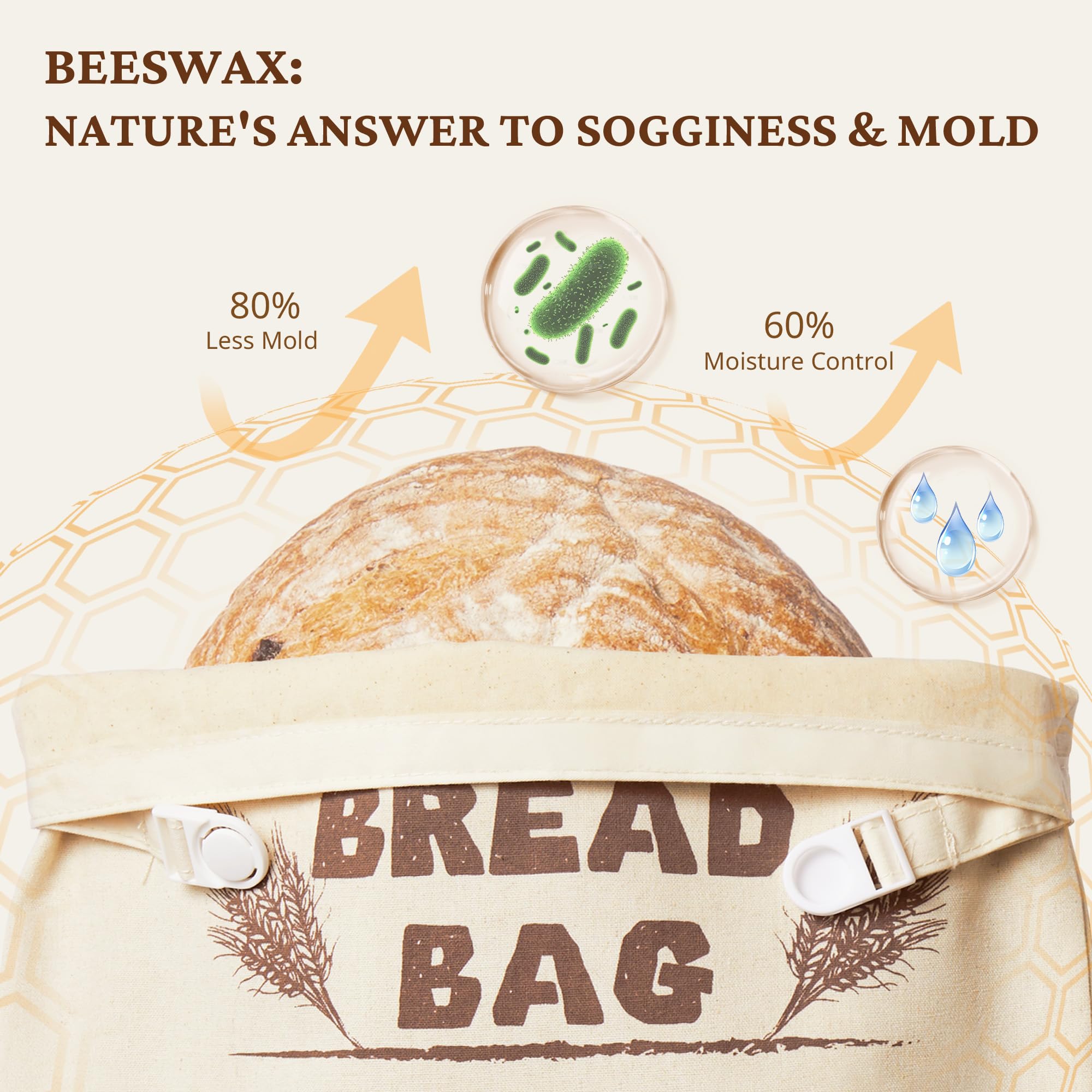With 17" × 13.5" of space, this beeswax sourdough bread bag stores up to 2 large sourdough loaves, sandwich bread, and more. Perfect for whole wheat, white bread, rolls, and other baked goods. No space worries—just fill, roll, clip, and go!